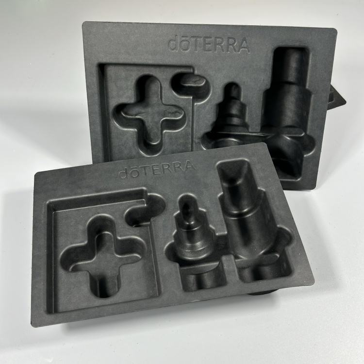 Operationally, pulp wins: trays nest tightly to maximize pallet density, are lighter than plastic to cut emissions and freight, and arrive production‑ready with repeatable tolerances that keep your line moving. Branding is integrated—deboss or emboss your logo directly into the fiber for a sophisticated, scratch‑proof mark—and the pulp can be tinted to your signature color or left black for a sleek, modern look. For humid logistics or oil‑rich formulas, optional water‑repellent or oil‑resistant treatments add confidence without giving up recyclability. After the reveal, consumers can recycle the insert where molded fiber is accepted—or compost it in suitable facilities—giving your brand an authentic sustainability story to match a refined unboxing.
